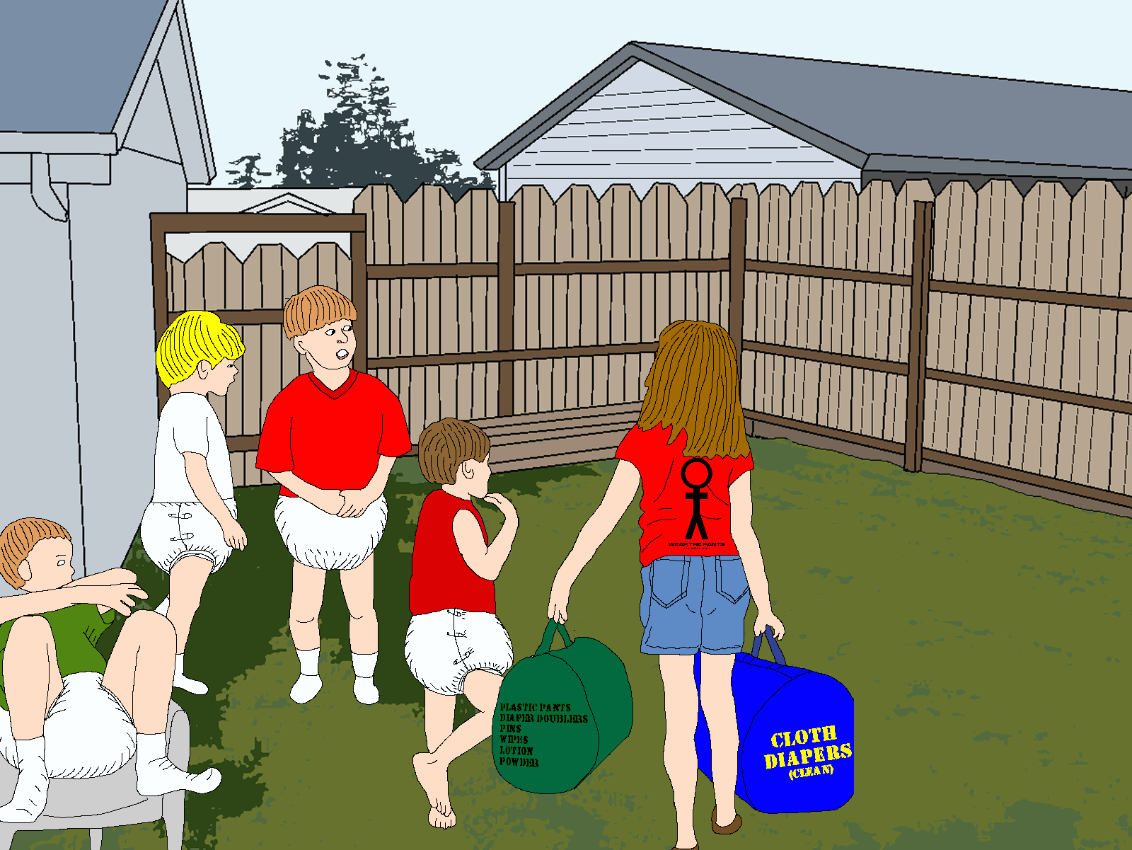 Please take a moment to share your remarks about the drawings. Place a check mark with each drawing you like and include your comments in the adjacent box. While the entry space is narrow, it will allow for unlimited length. Please also take a moment to tell a little about yourself and your family, and the diapers you wear. Comments for your other family members may also be entered. When finished click the [Submit] button at the bottom of the page. Thank you.