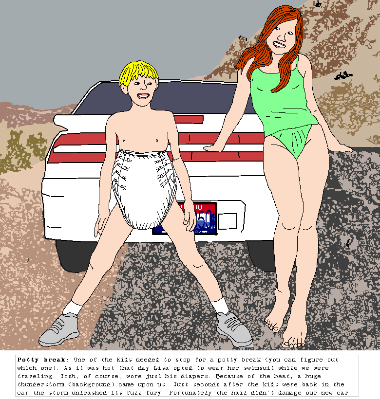 Please take a moment to share your remarks about the drawings. Place a check mark with each drawing you like and include your comments in the adjacent box. While the entry space is narrow, it will allow for unlimited length. Please also take a moment to tell a little about yourself and your family, and the diapers you wear. Comments for your other family members may also be entered. When finished click the [Submit] button at the bottom of the page. Thank you.