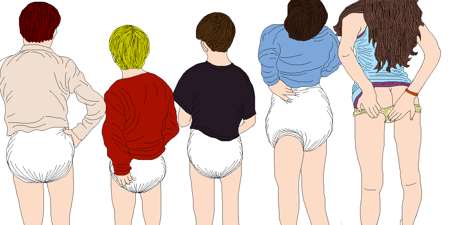 Please take a moment to share your remarks about the drawings. Place a check mark with each drawing you like and include your comments in the adjacent box. While the entry space is narrow, it will allow for unlimited length. Please also take a moment to tell a little about yourself and your family, and the diapers you wear. Comments for your other family members may also be entered. When finished click the [Submit] button at the bottom of the page. Thank you.